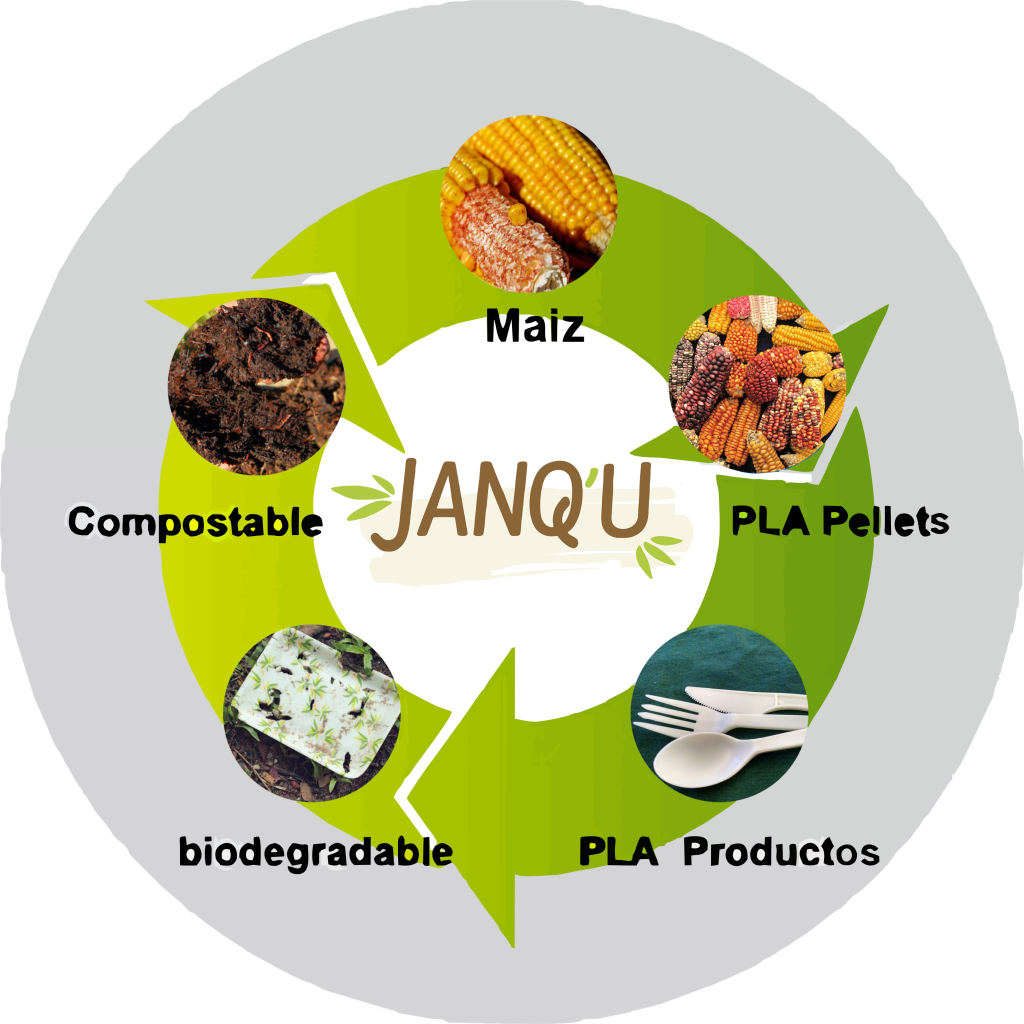 PLA significa ácido poliláctico, que es una resina hecha de almidón de maíz. El PLA se utiliza para hacer envases compostables y se usa para fabricar vasos y recipientes impermeables. Es biodegradable y totalmente compostable. Se utiliza un 65 % menos de energía que en producir envases desechables convencionales. El CPLA es un material cristalizado naturalmente del PLA, resistente hasta 85 grados de calor.También son compostables